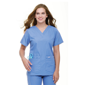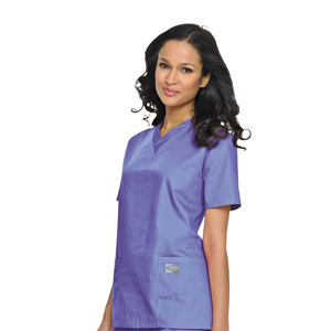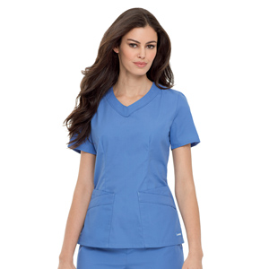 The ultimate efficiency top that makes getting ready for work a snap. V-neck with sewn-down facing, set-in sleeves and... |