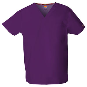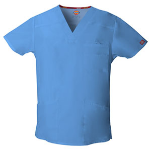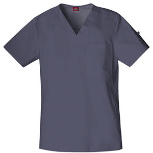 A Unisex V-neck top features Dickies logo twill tape at the back neck, a front chest pocket with a bar tacked pencil... |