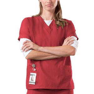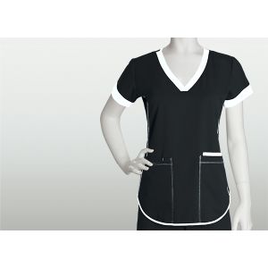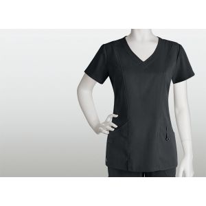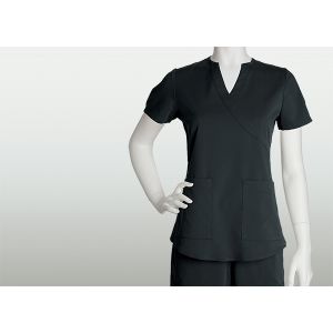 This mock wrap tunic features two patch pockets, one cell phone pocket, side vents and an adjustable tie back. Center... |