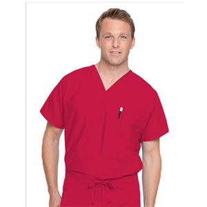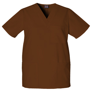 This Unisex V-neck top has one chest pocket and two patch pockets. Side vents. Center back length 29". |