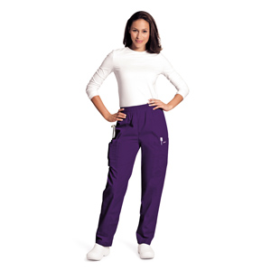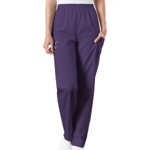 Elastic waist utility pant has two cargo pockets, a cell phone pocket and an outside scissors pocket. Inseam 27.5". |