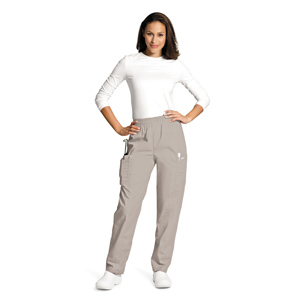 Elastic waist utility pant has two cargo pockets, a cell phone pocket and an outside scissors pocket. Inseam 27.5". |