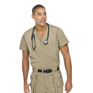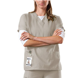 A Unisex V-neck features double needle stitching. The chest pocket features an instrument holder. Also included are... |