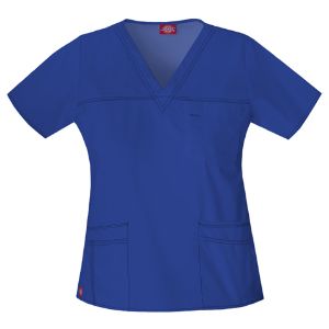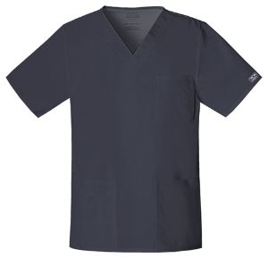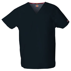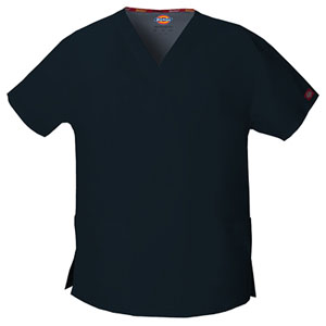 A Unisex V-neck top features Dickies logo twill tape at the back neck, a front chest pocket with a bar tacked pencil... |