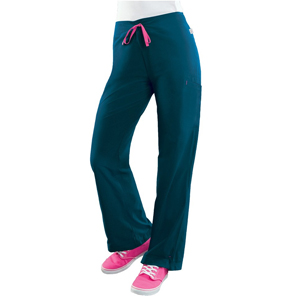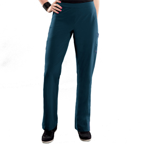 An elastic waist utility pant has two cargo pockets, a cell phone pocket and an outside scissors pocket. Inseam: 33" |