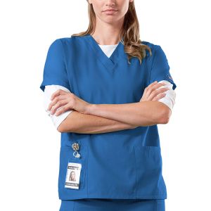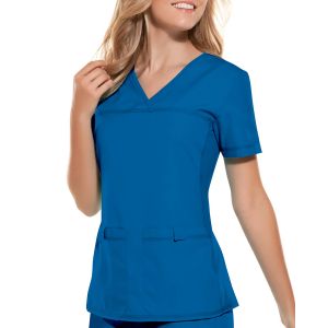 | sdlp2968~1 2968 Cherokee  V-Neck Top A sporty V-neck features a  front yoke, patch pockets with a snap tab closure for added security and matching stretchy...