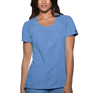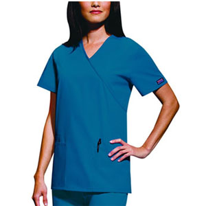 | sdlp4801~1 4801 Cherokee Women's Mock Wrap Tunic This mock wrap tunic features two patch pockets, one cell phone pocket, side vents and an adjustable tie back. Center...
