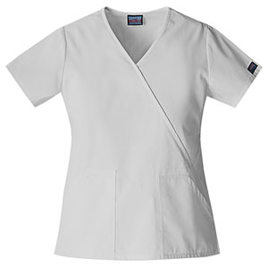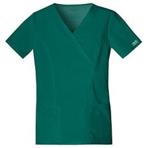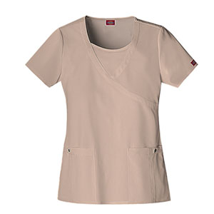 A Junior fit mock wrap top features a front inset for modesty. The patch pockets feature with stitch detailing and... |