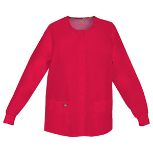 A Missy fit, round neck, snap front, warm-up jacket features Dickies logo twill tape at the back neck and an instrument... |