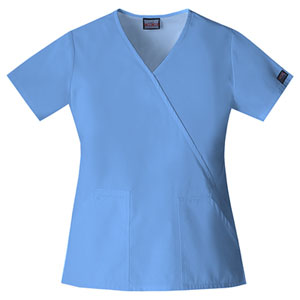 | sdlp4741~1 4741 Cherokee Mock Wrap Top A fit and flare mock wrap top features three angled patch pockets and one hidden left pocket and side vents. Center...