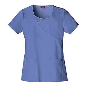 | sdlp86806~1 86806 Dickies Mock Wrap Top A Missy fit, empire waist, mock wrap top features Dickies logo twill tape at the back neck and an instrument loop on...