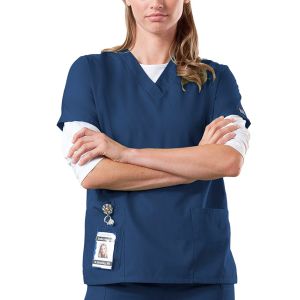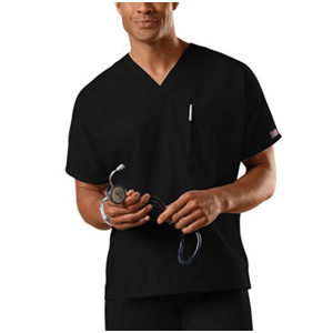 Dolman sleeve, v-neck unisex tunic has a chest pocket with a pencil slot. Center back length 27.5". |