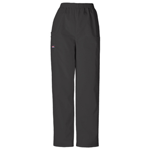 Elastic waist utility pant has two cargo pockets, a cell phone pocket and an outside scissors pocket. Inseam 30". |