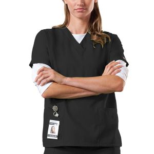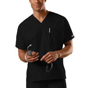 Dolman sleeve, v-neck unisex tunic has a chest pocket with a pencil slot. Center back length 27.5". |