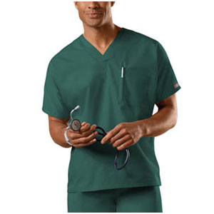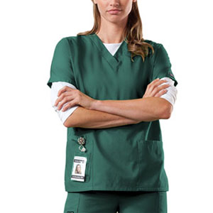 Dolman sleeve, v-neck unisex tunic has a chest pocket with a pencil slot. Center back length 27.5". |