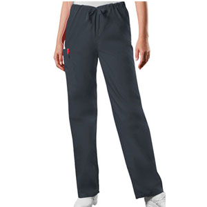 Elastic waist utility pant has two cargo pockets, a cell phone pocket and an outside scissors pocket. Inseam 30". |
