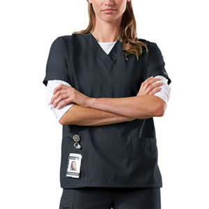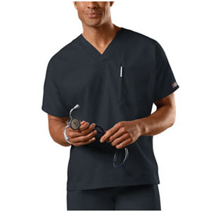 Dolman sleeve, v-neck unisex tunic has a chest pocket with a pencil slot. Center back length 27.5". |